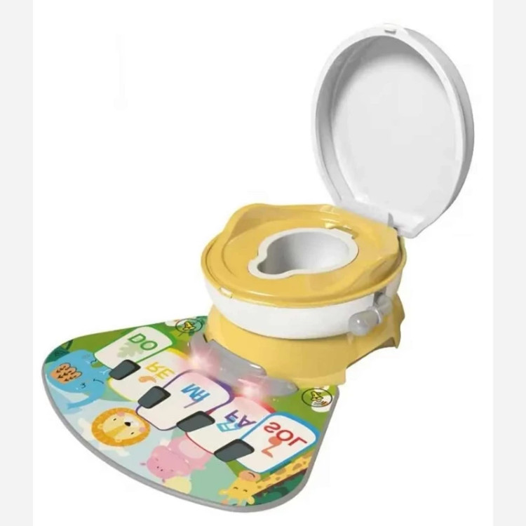 دارای پیانو فرشی موزیکال و چراغدار در پایین صندلی که در هنگام استفاده کودک از صندلی توالت میتواند با پاهای خود روی دکمه های پیانو ضربه بزند و با صدای موزیک و رقص نور تشویق و سرگرم شود.