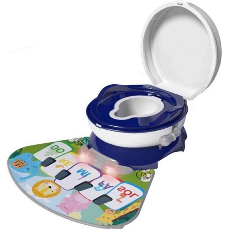 دارای پیانو فرشی موزیکال و چراغدار در پایین صندلی که در هنگام استفاده کودک از صندلی توالت میتواند با پاهای خود روی دکمه های پیانو ضربه بزند و با صدای موزیک و رقص نور تشویق و سرگرم شود.