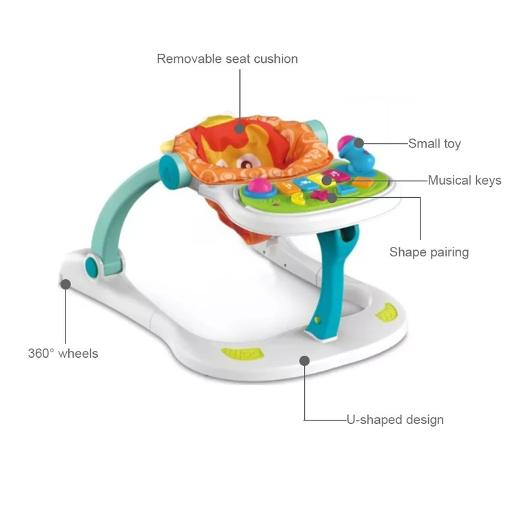 این واکر موزیکهای متنوع دارد تا جذابیت بیشتری برای کودکان ایجاد کند.این مدل دارای بدنهای با طرح شیر و رنگهای متنوع است تا جذابیت بیشتری برای کودکان ایجاد کرده و بیشتر آنها را به استفاده از این وسیله ترغیب کند.